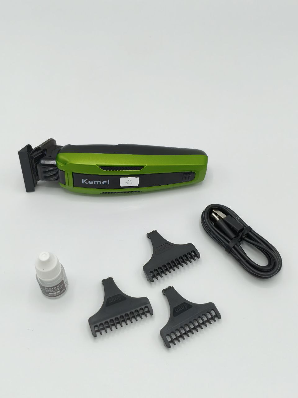 کیت لوازم جانبی: ماشین اصلاح کیمی مدل KM-1510 معمولاً با مجموعهای از لوازم جانبی شامل شانههای مختلف برای تنظیم طول برش، برس تمیزکننده، روغن برای تیغهها و شارژر عرضه میشود.